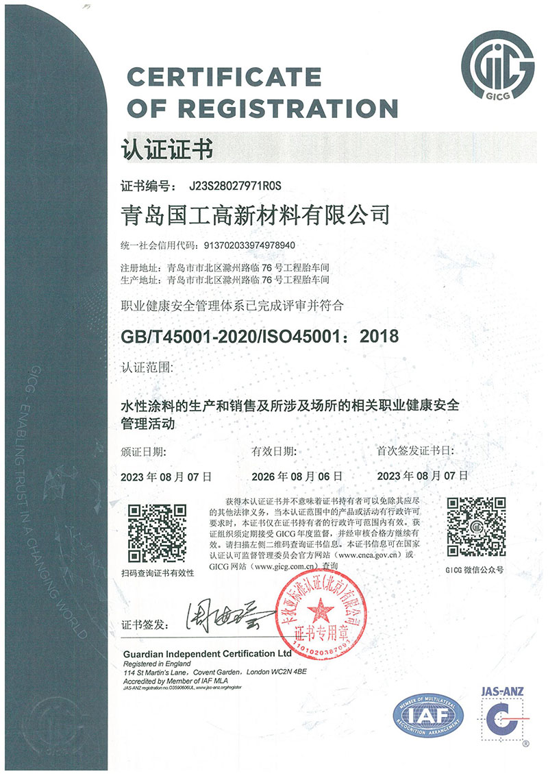 職業健康管理體系證書 - 榮譽資質 - 青島湛江鑫本航空航天集团****