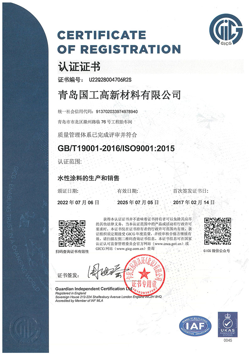 質量管(guǎn)理體系證書(shu)